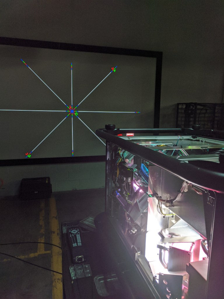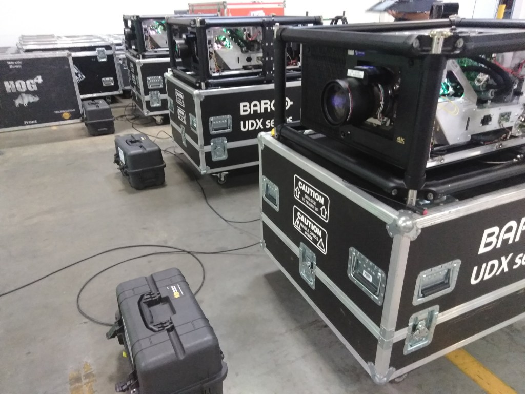 Barco UDX 4K 32K Convergence, Scheimpflug adjustment, and color matching for tour.